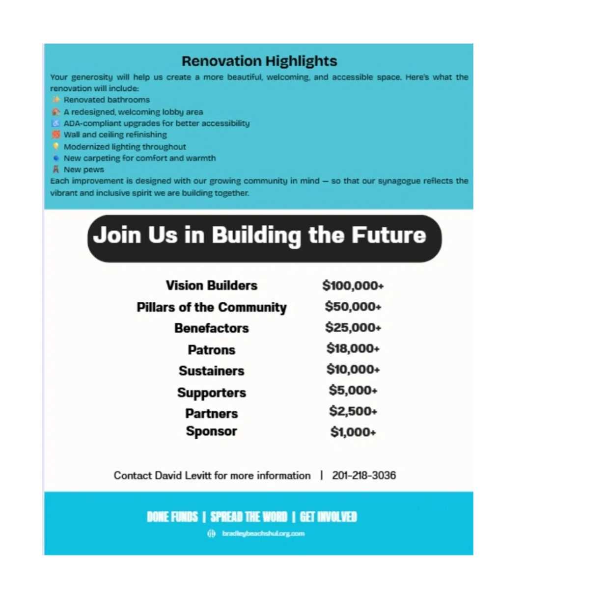 This year marks an exciting new chapter. With a new rabbi, fresh programming, and new faces joining our community, the energy here is palpable. We’ve seen record growth this summer — young members are stepping in, and longtime members are finding renewed connection. Now, our space must reflect and support that growth. That’s why we’re launching the final phase of our renovation campaign — creating a more beautiful, functional, and welcoming home for us all.